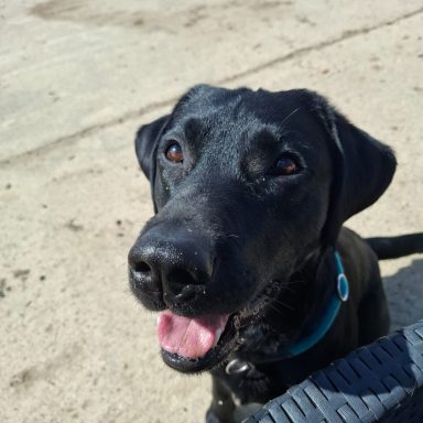 Fly ist als Labrador eine absolute Frohnatur. Er mag alle und jeden und ist 2022 geboren. Er war nie als Sporthund gedacht, hält sich selbst allerdings für einen Schlappohr-Malinois.